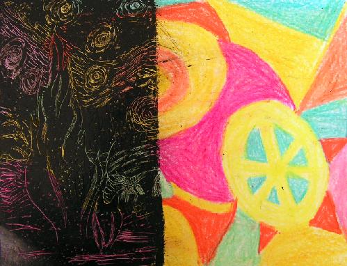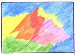 next layer won't cover well. Fill the paper with crayon shapes and patterns making sure to press hard. It is best to use light colors at this stage. |