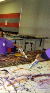 Appreciation. Supplies Needed Black or White construction paper (role paper preferably), tempera paint, brushes, small plastic containers for drip technique, protective clothing, scissors, drop cloth if done indoors and Music (Bob James) works best for me. Drop cloth, string and a picture frame. Introduction: Discuss the abstract "Action Painter" Jackson Pollock and others within this art movement; William de Kooning, Lee Krashner, ect. Discuss the indigenous Jazz movement in America (Charlie Parker, Dizzy Gillespie, etc; tie together the importance that neither of these two art forms were copied (both were and are original concepts). (Note: reframe from music with lyrics, these can be suggestive and or leading in creativity). Show examples of Pollock's work (Black and White or Lavender Mist, etc.). This lesson is appropriate for the disable child. |