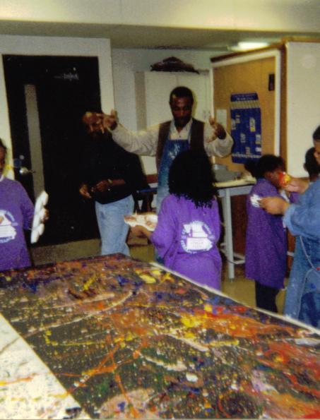 students worked as a collective on the painting, there is no ownership. The whole thing belongs to them. Have the students select an